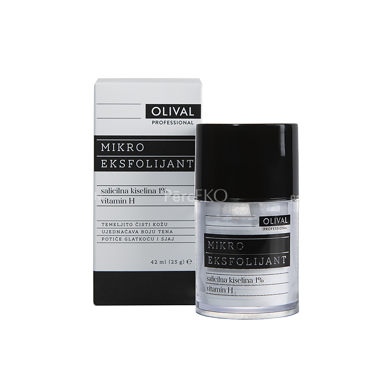 Microexfoliant is an innovative exfoliation that combines chemical and mechanical exfoliation. Based on 1% salicylic (BHA) acid, castor wax grains, vitamin H (biotine) and allantoin, microexfoliant deeply cleanses pores, evens out the color of the complexion and promotes smoothness and shine. In contact with water, the powder creates a thick, creamy deep exfoliation paste that removes dead skin cells and prepares it for a care routine.